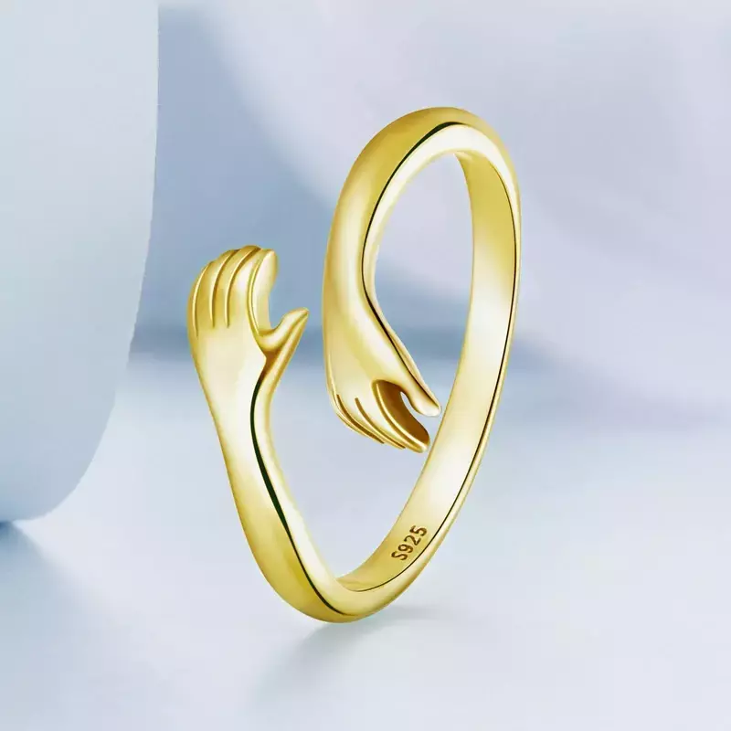 Não perca a oportunidade de expressar seus sentimentos com este Anel de Abraço Dourado. Adquira o seu agora mesmo e celebre o amor!